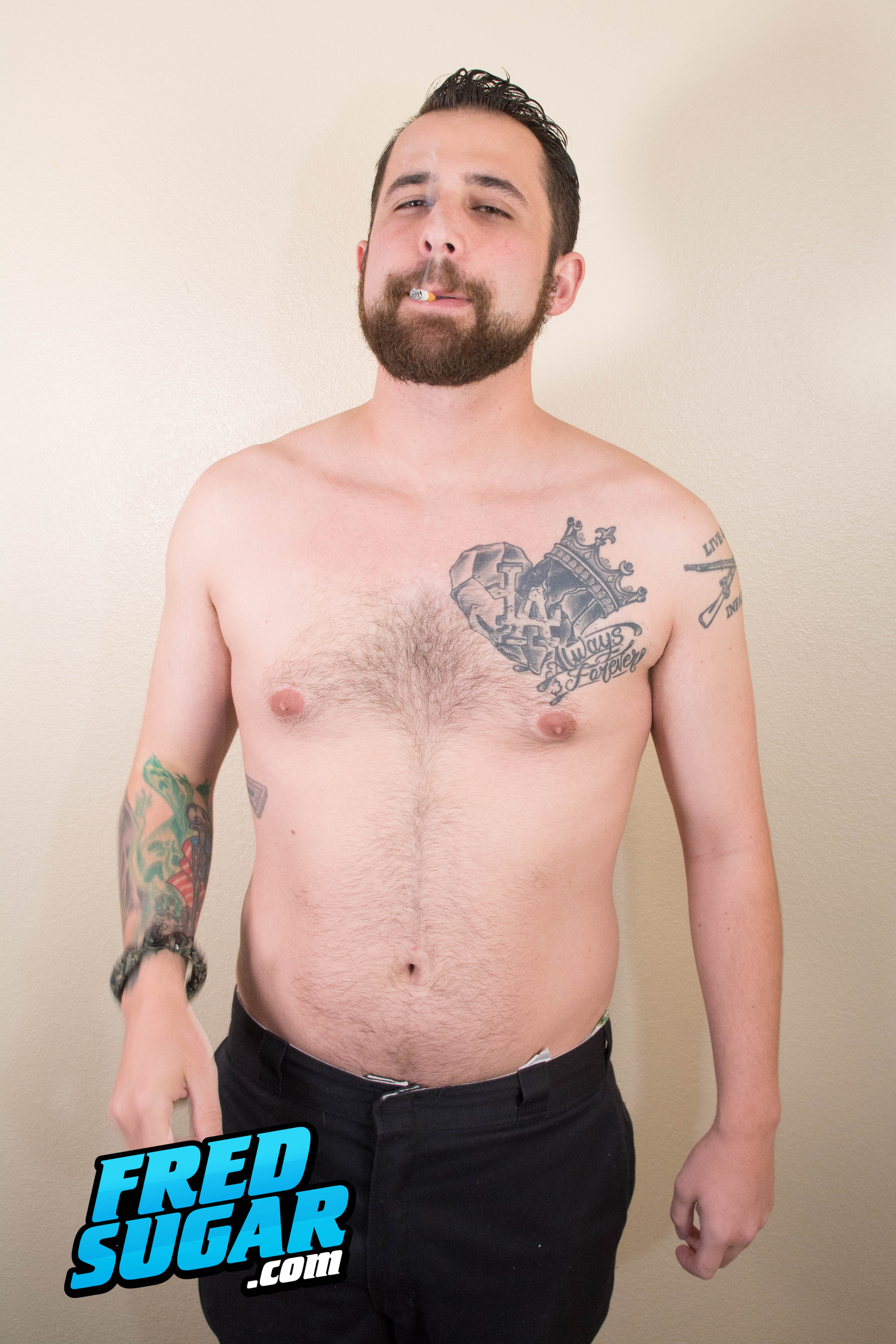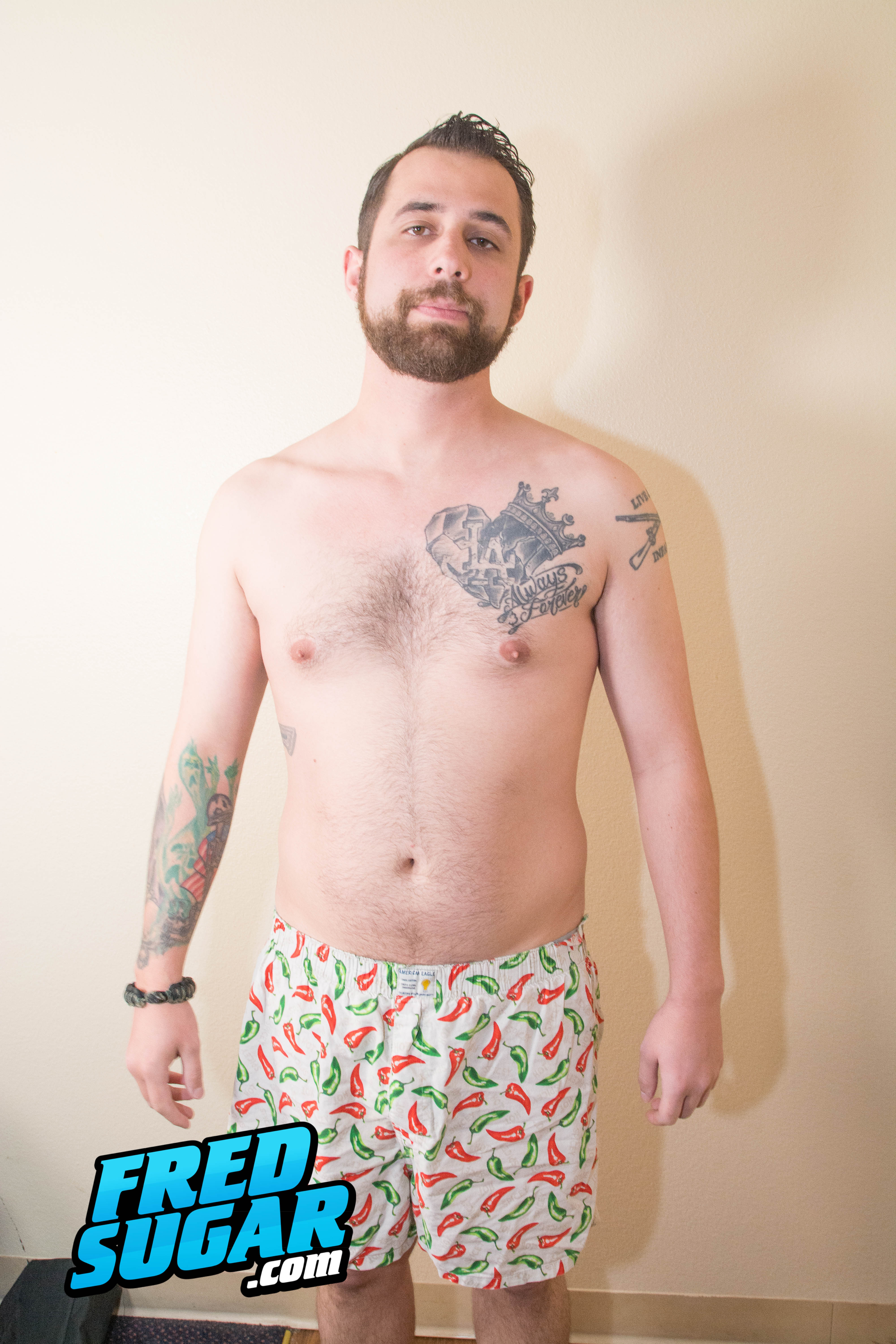 Rocky Willis is a fun friendly guy that I met on a straight porn set. Very confident and easy going. Rocking the beard and dad-bod works for him on the ladies, and I thought he'd be a good fit for the FredSugar fans as well. He had no problems spreading his ass cheeks for the camera, matter of fact the attention turned him on, one of the fastest solo times that I've seen in a long while.