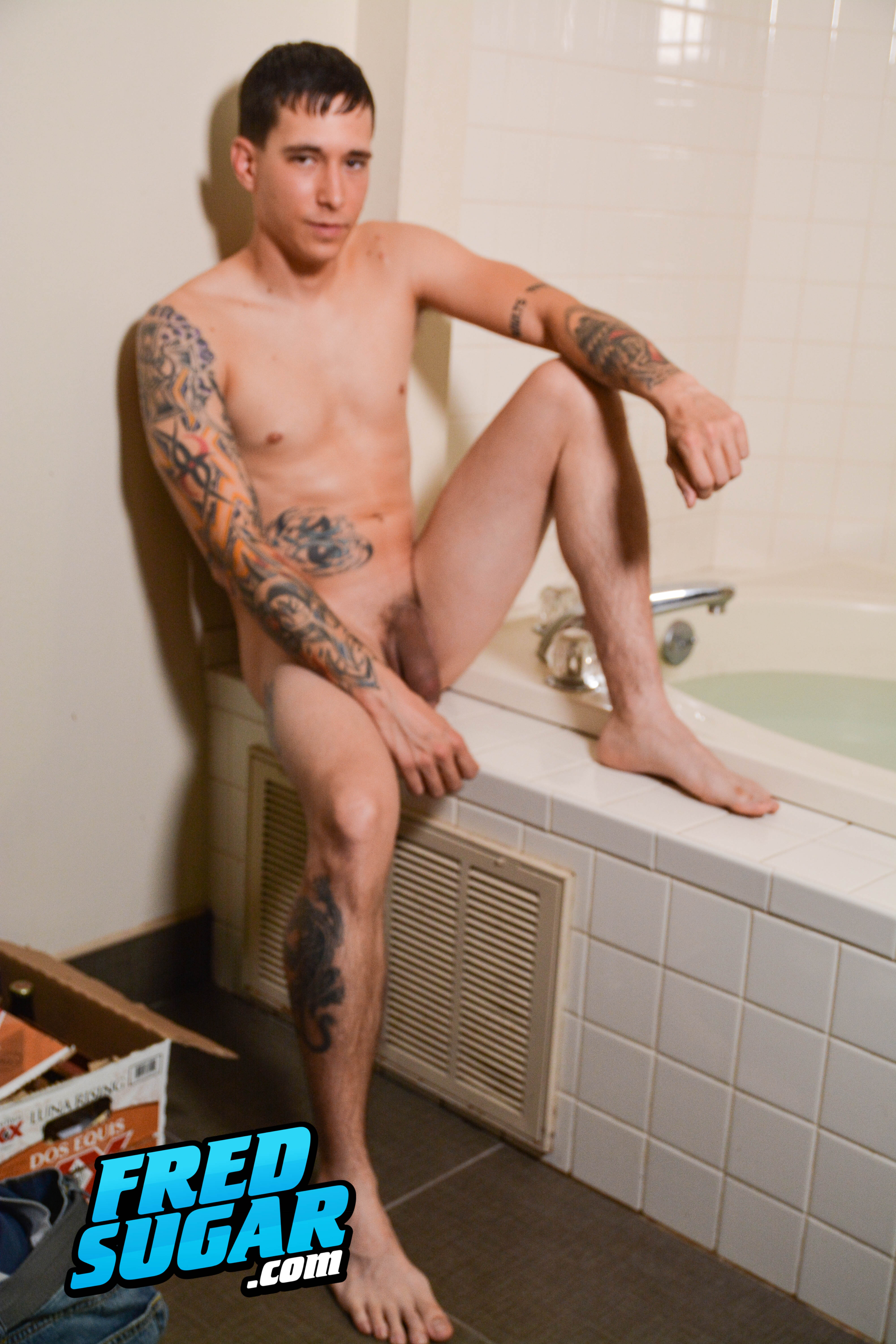 Jason Tatts is back, with the new name of Damien Miller. Still has the super thick long uncut cock, and he's put on a bit more muscle. A nice hanging out scene showing plenty of him naked in the bath before he jerks off a load in the bed.