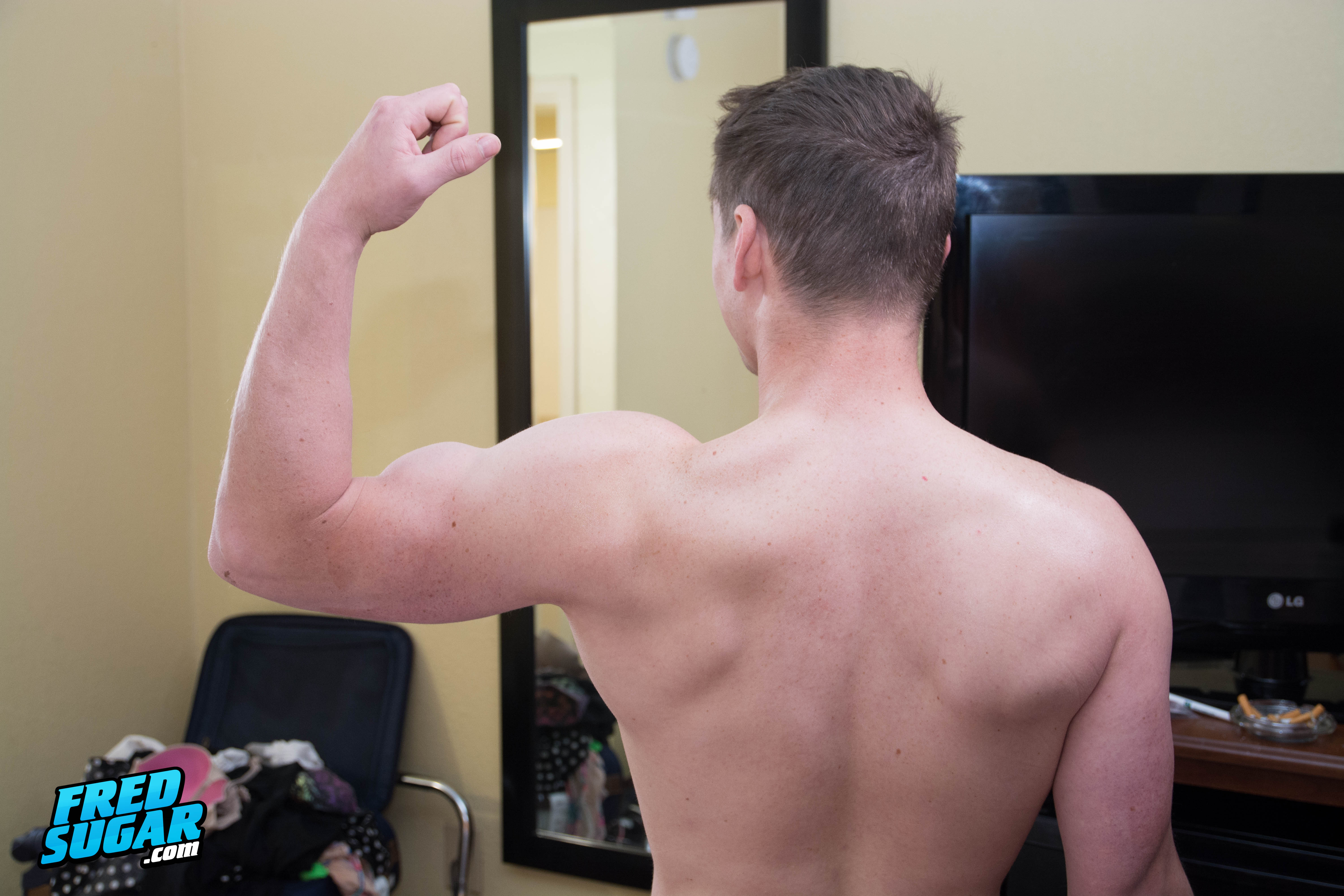 Trouble Grandview, baby-faced 24 year old. Looks all innocent but he definitely has a naughty-side. Likes all kinds of women and has even delved into bondage. Met him on set of a straight video shoot and of course invited him to come do a solo and see what else that he might be open to doing. I measured his cock at around 8" but I think in at least one of the measurements I might have gotten some of his big dangling balls involved.