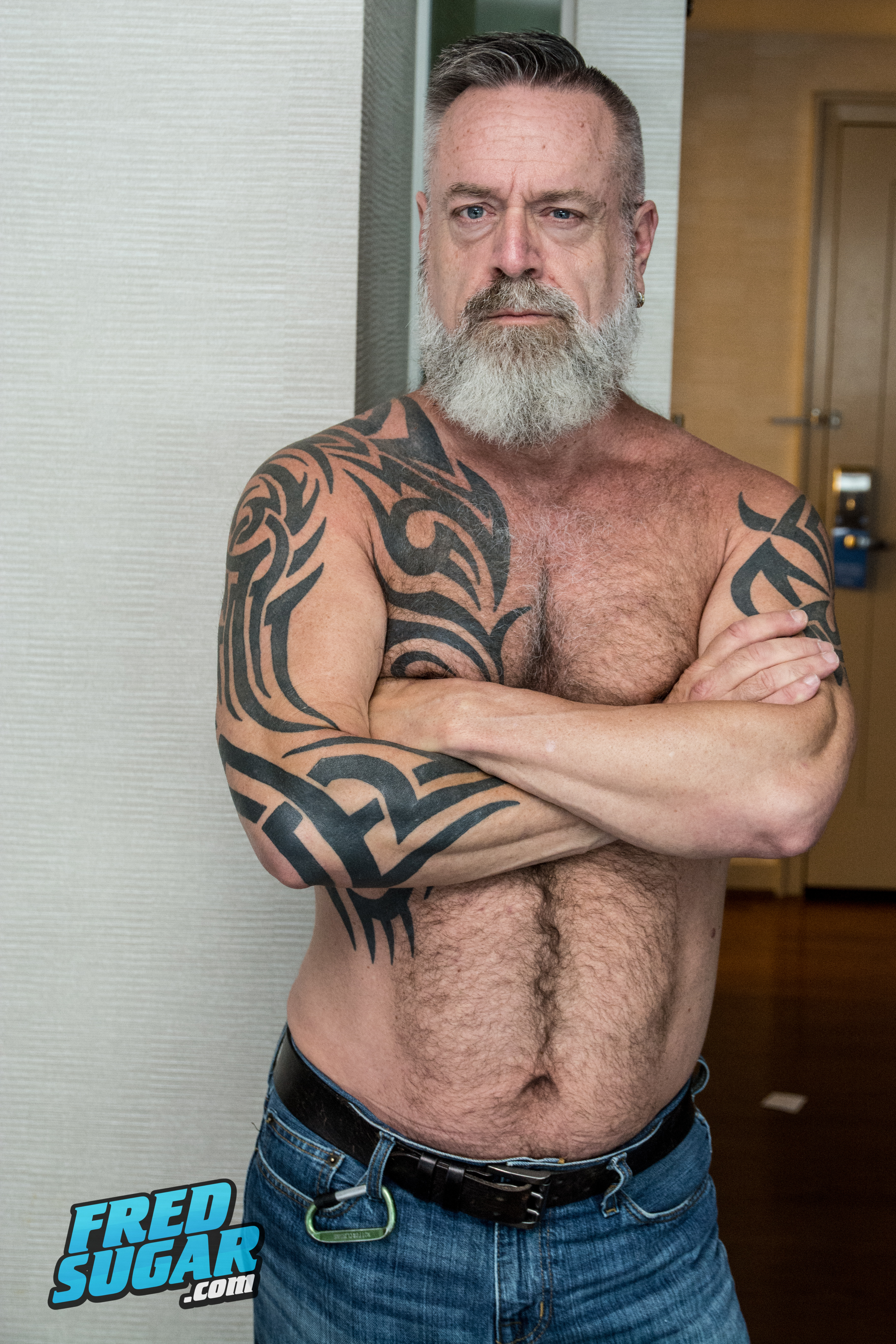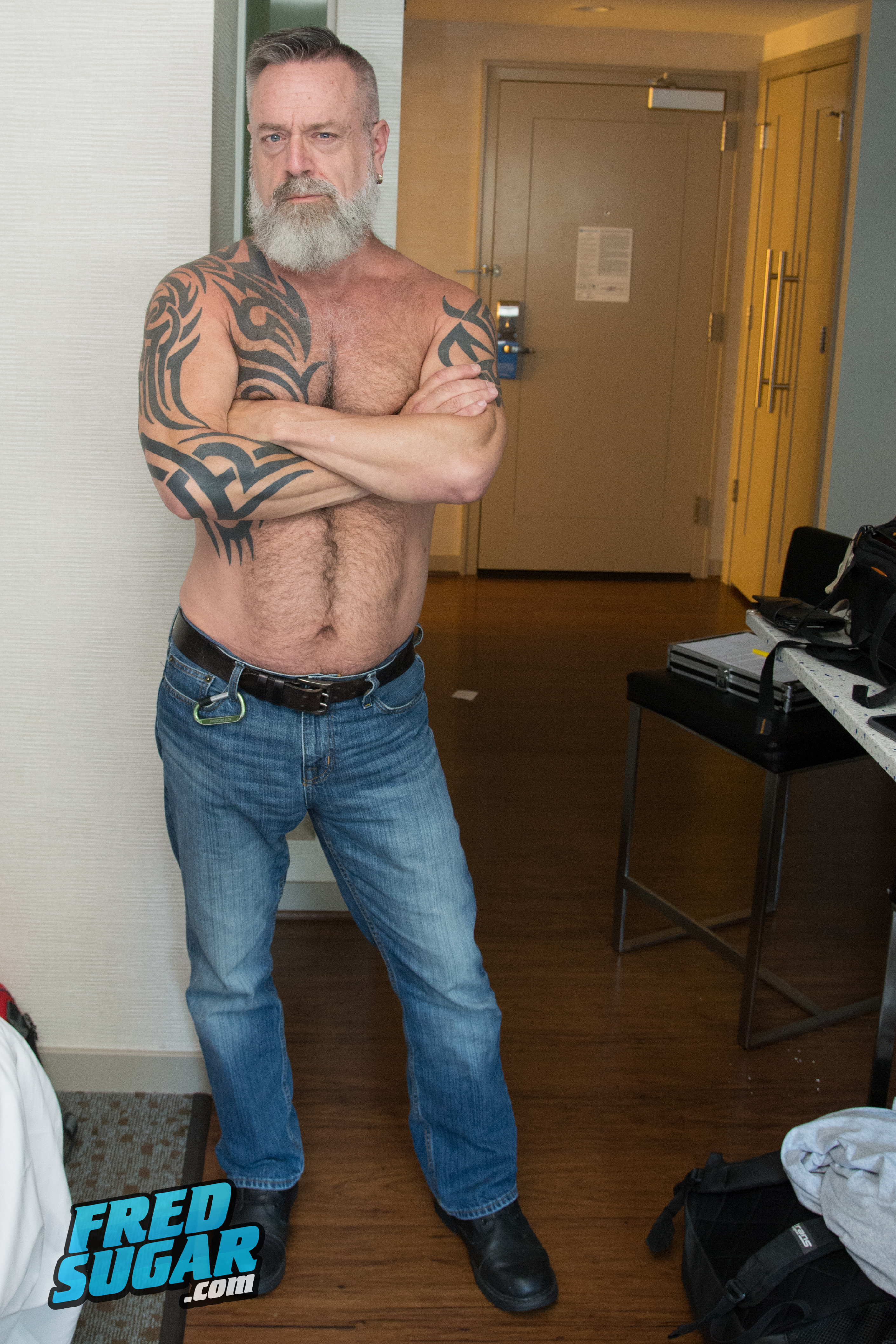 Sexy, silver, tattooed daddy that I met on a road trip. I think he's the most LIVED model I've met, he's has seen and done LOTS of things. In addition to seeing his furry, naked body, it was also very interesting just talking to him after the shoot was over. I wish I'd recorded the convo as well his hot quickie jerk off scene. Let me know, if you would like to see more of him in the future!