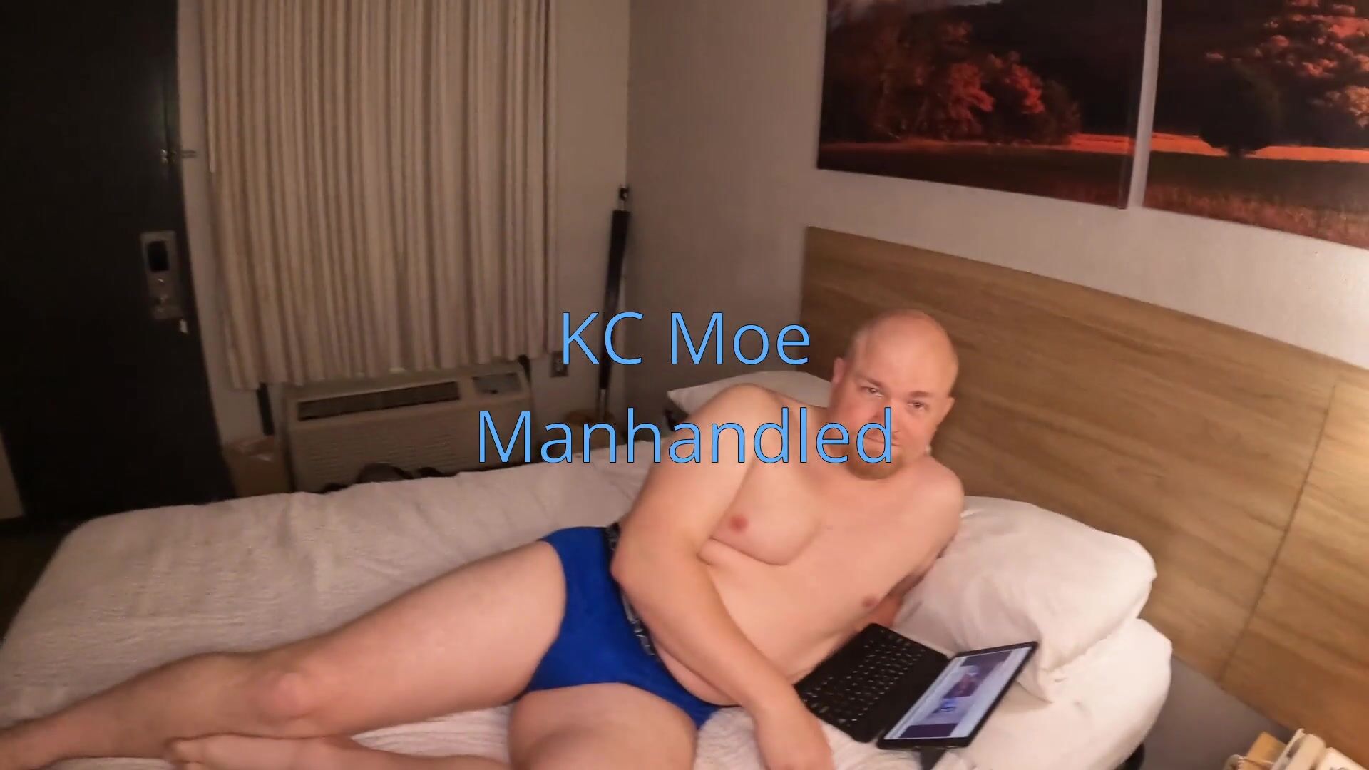 Straight guy, KC Moe came in after I convinced him to let me manhandle him. He wasn't sure if it would work, since he had auditioned solo before a couple years ago and just couldn't get into it. But he had no problems doing a straight scene so I figured it was just the nerves. I think i was right, because with my hand stroking his cock. He came HARD and squirted a thick load all over himself and my hand.