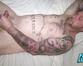 This bruiser was a surprise walkin audition, he was far more nervous of me than you would have imagined. with his gruff voice and tattooed body. A man over 40, doesn't sound like he's been too sexual adventurous so not sure what much more he will do given his nerves, but he did still manage to stroke if for us and shoot his load.