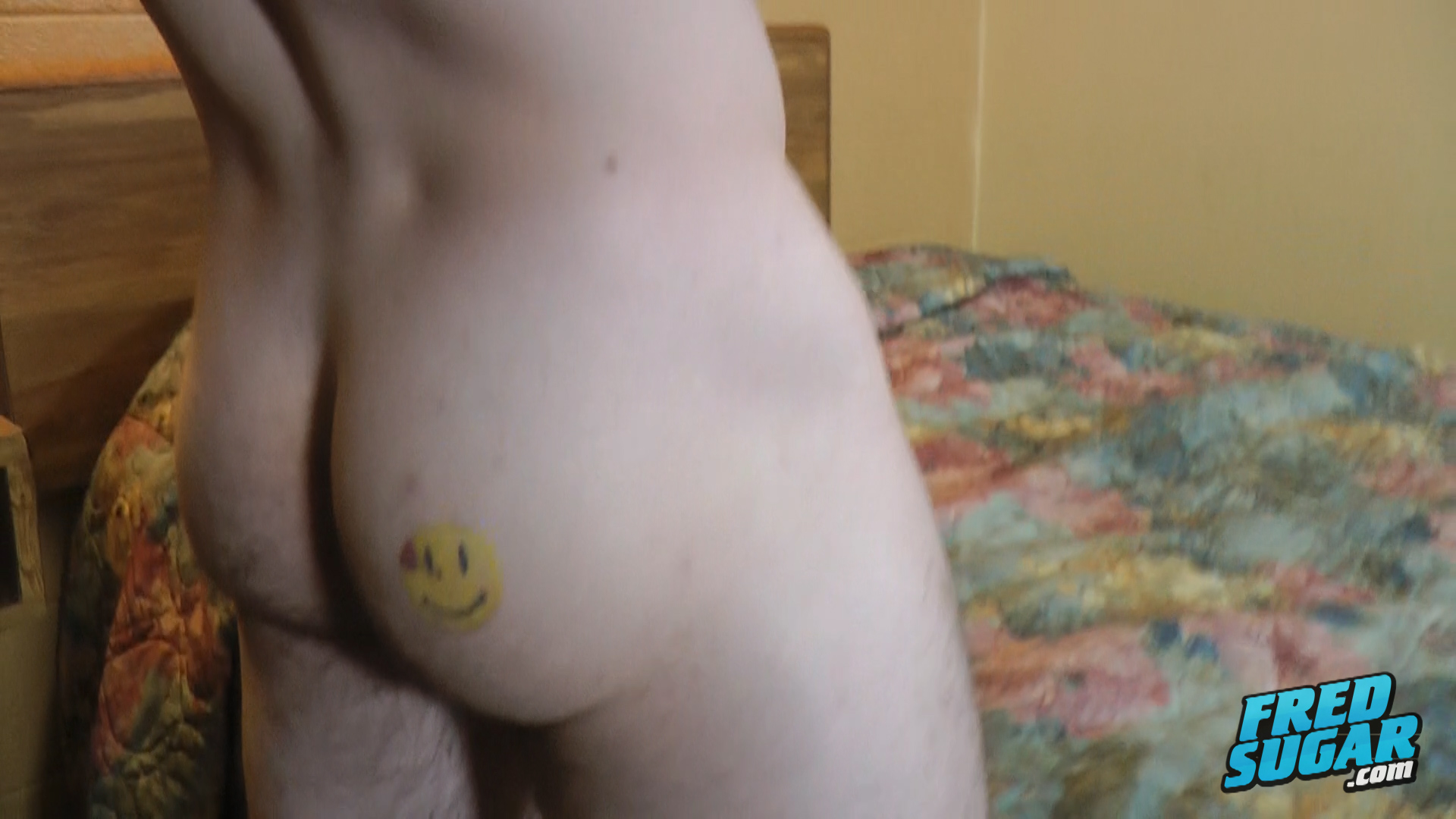 Sexy nervous Sam Smiley. You'll see why I call him Smiley when you get a look at his tattoo. Also has a penis piercing and nice tattoos. On the road, shooting lots of new talent this week.